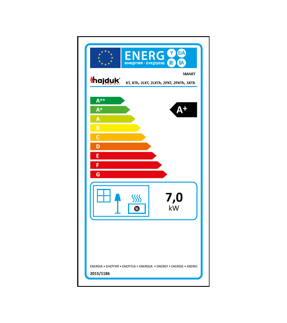 Il bruciatore a legna SMART XT è un dispositivo di riscaldamento performante e robusto, ideale per spazi che richiedono una soluzione efficace ed esteticamente piacevole. Offre una potenza nominale di 7 kW, garantendo così la flessibilità necessaria per soddisfare le esigenze di calore. La sua progettazione assicura un'efficienza energetica di classe A+ e un'efficienza media notevole dell'83%.