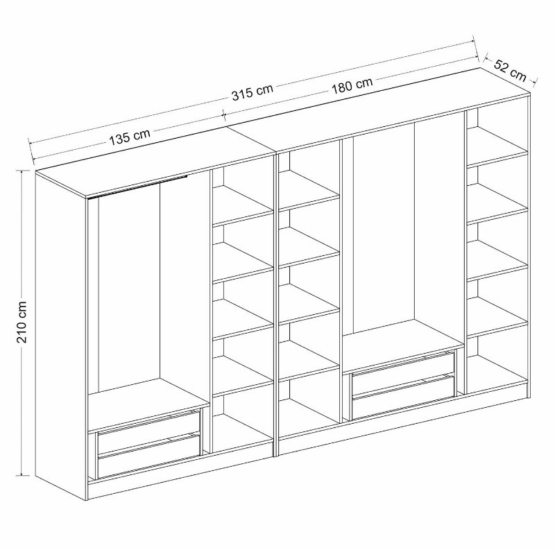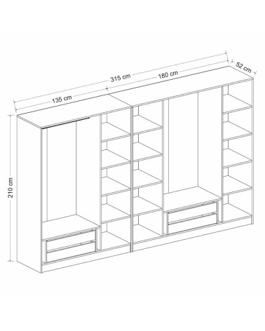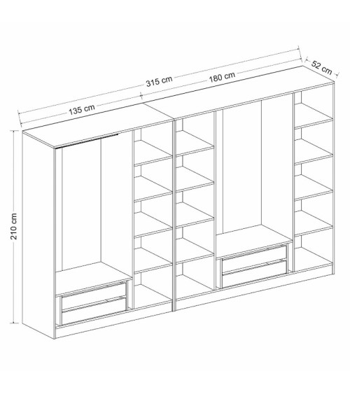 armoire dimension 217X222X62 le caisson avec 2 tiroirs est inclus