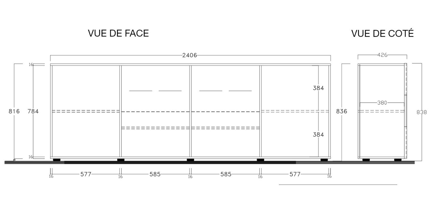Dimensions (L x P x H): - Bibliothèque 4 étagères + 2 portes : 94 x 35 x 181 cm Caractéristiques: - Étagères...