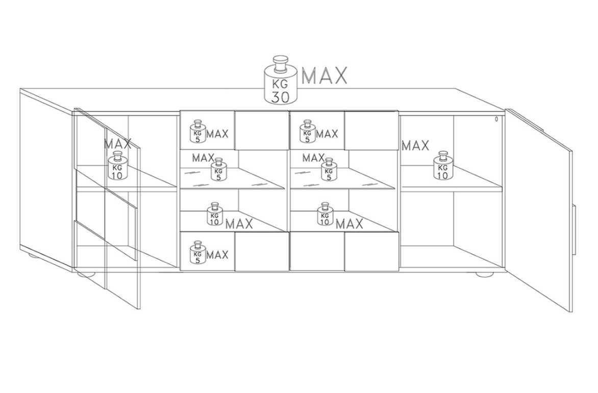 copy of Bibliothèque 4 étagères + 2 portes 94 x 35 x 181 cm blanc artik-blanc poli