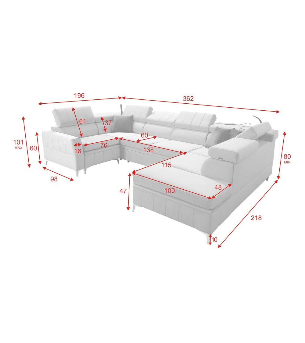 - Canapé: 202 x 70 x 85 cm