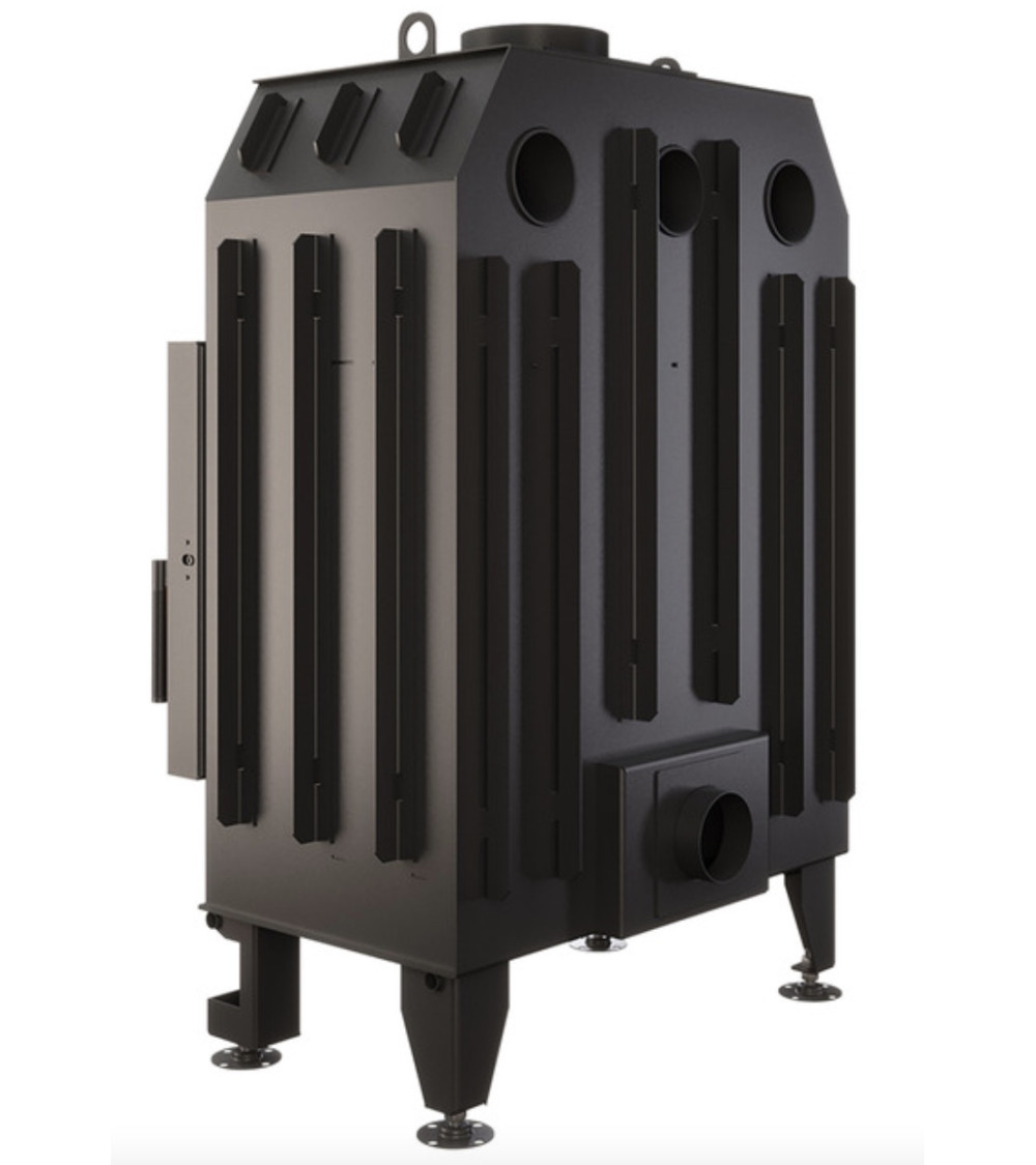 - Réglage de l`air secondaire - dite « rideau d`air » se fait avec un mécanisme installé sur la porte des inserts. L`ouverture du mécanisme permet à l`air d`entrer dans l`insert dans sa partie supérieure, où la combustion des gaz produits au cours du processus de combustion du bois a lieu. Cela permet de réduire considérablement les émissions de CO nocives dans l`atmosphère. Air dirigé vers la lame « balaye » le verre repoussant le feu et la fumée. Il réduit considérablement le dépôt de suie sur le verre de sorte qu`il reste propre