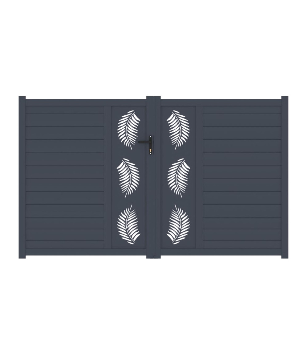 El Portón Zoé 140x300 cm es mucho más que una simple cerradura: es una auténtica pieza decorativa que realza la entrada de tu hogar. Gracias a su diseño semi ciego con calados decorativos, protege tu intimidad dejando pasar la luz a través de sus elegantes recortes con forma de hoja. ¿El resultado? Una entrada destacada, acogedora y de estilo contemporáneo.