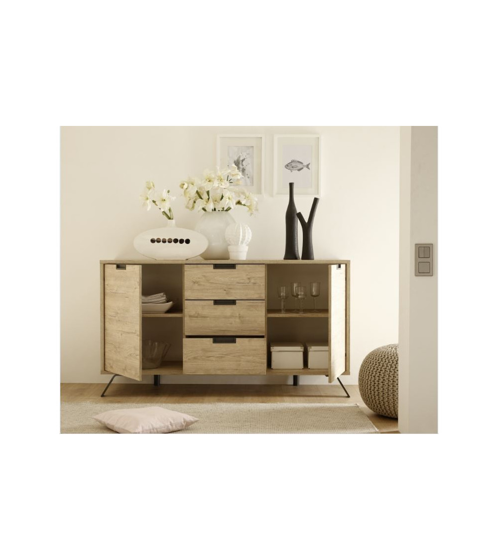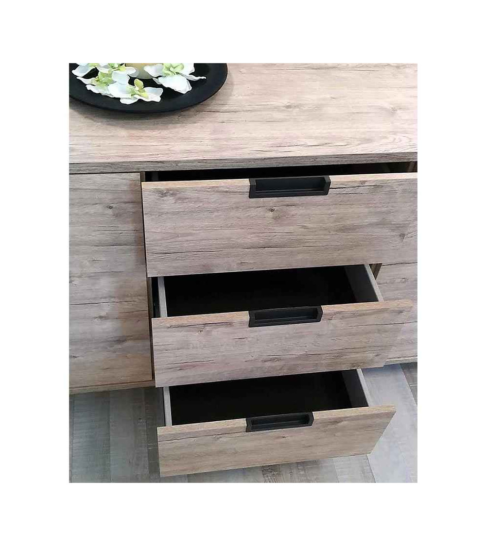 Este sublime aparador PALMA ofrece un espacio de almacenamiento excepcional, su diseño moderno crea un contraste único con su color roble natural dando a este un estilo propio.