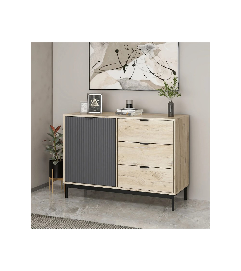 Un magnífico diseño, moderno y cálido, el encanto de este aparador sin duda embellecerá su sala de estar; los paneles están hechos de aglomerado de primera clase.
