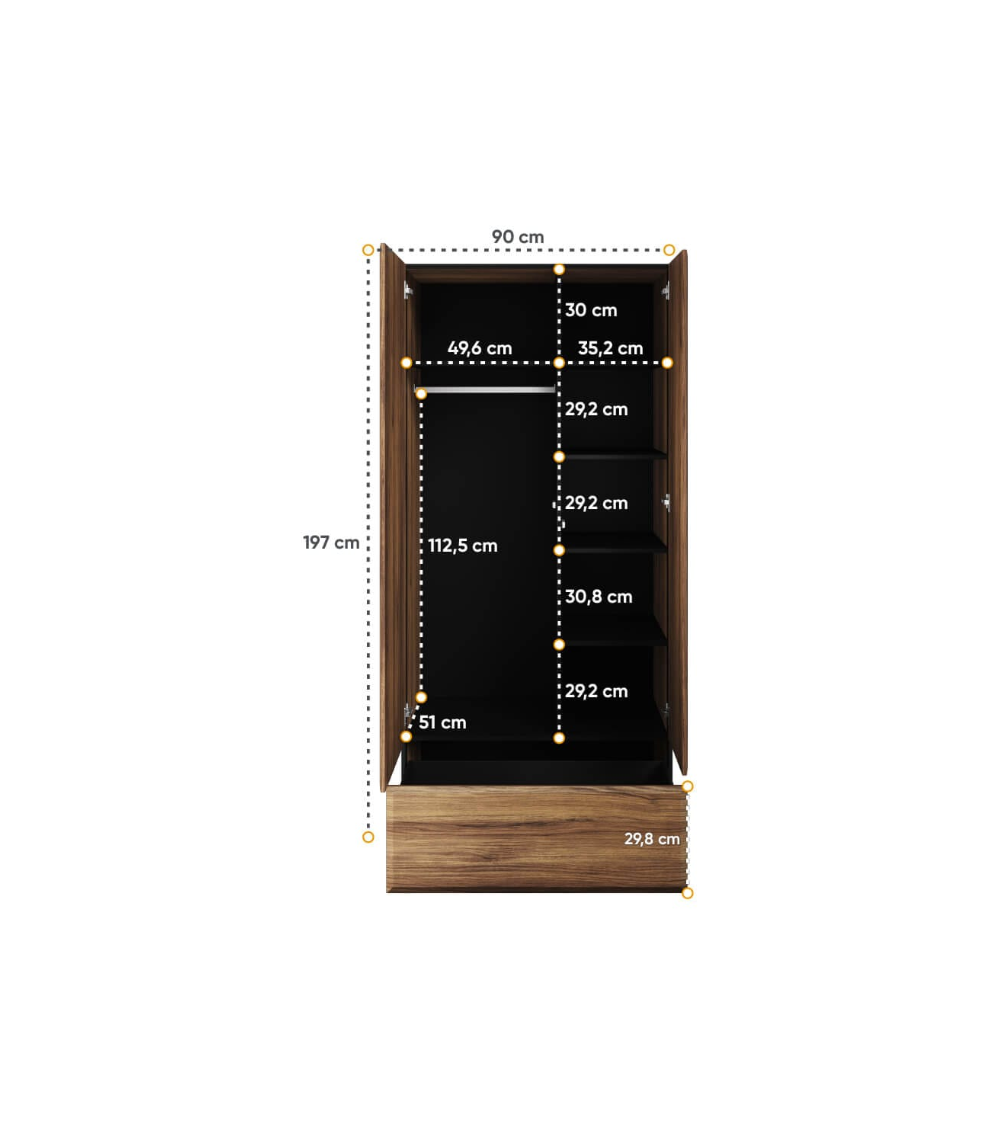 La cómoda Borga se adapta perfectamente a cualquier sala de estar moderna o dormitorio, gracias a su diseño minimalista y colores refinados. Con sus dos puertas sin tiradores y bordes fresados, asegura un estilo elegante mientras optimiza el espacio. Gracias a la barra y los estantes, puedes organizar ropa, accesorios u objetos personales. El diseño push-to-open añade un toque de comodidad, permitiendo una apertura fluida y silenciosa.