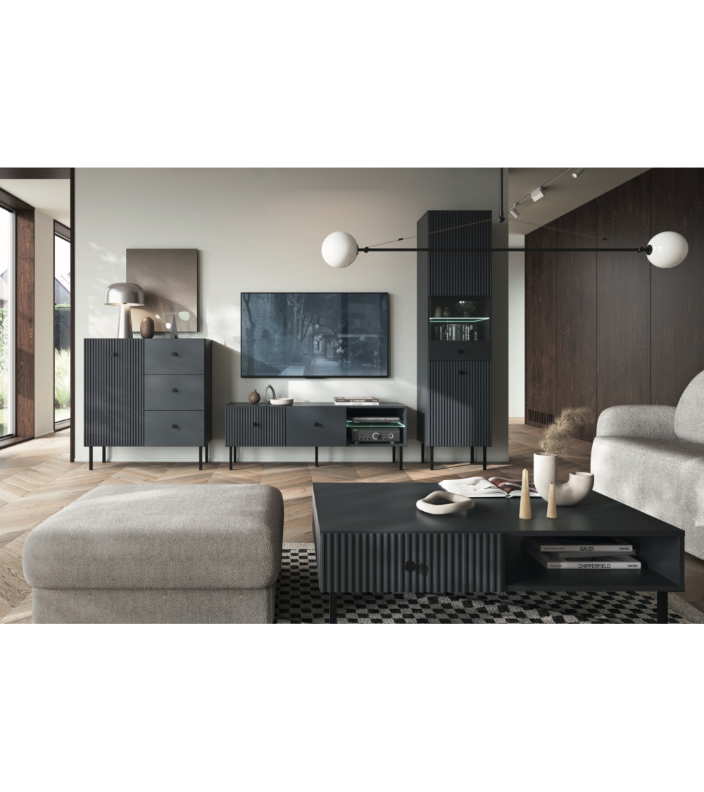El Aparador VIENA Antracita es la solución ideal para añadir espacio de almacenamiento sin comprometer la estética. Perfecto para el salón o el comedor, se adapta a cualquier decoración gracias a su moderno color antracita.