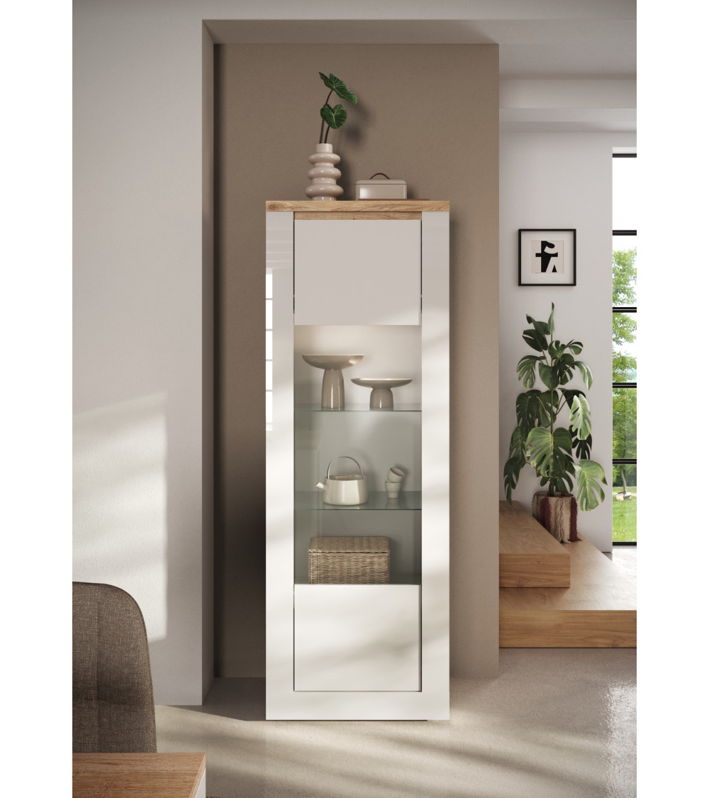 Descubre la elegancia y funcionalidad de la Vitrina 1 puerta 71 cm - ISCHIA, un mueble diseñado para embellecer tus espacios mientras ofrece una solución práctica de almacenamiento.