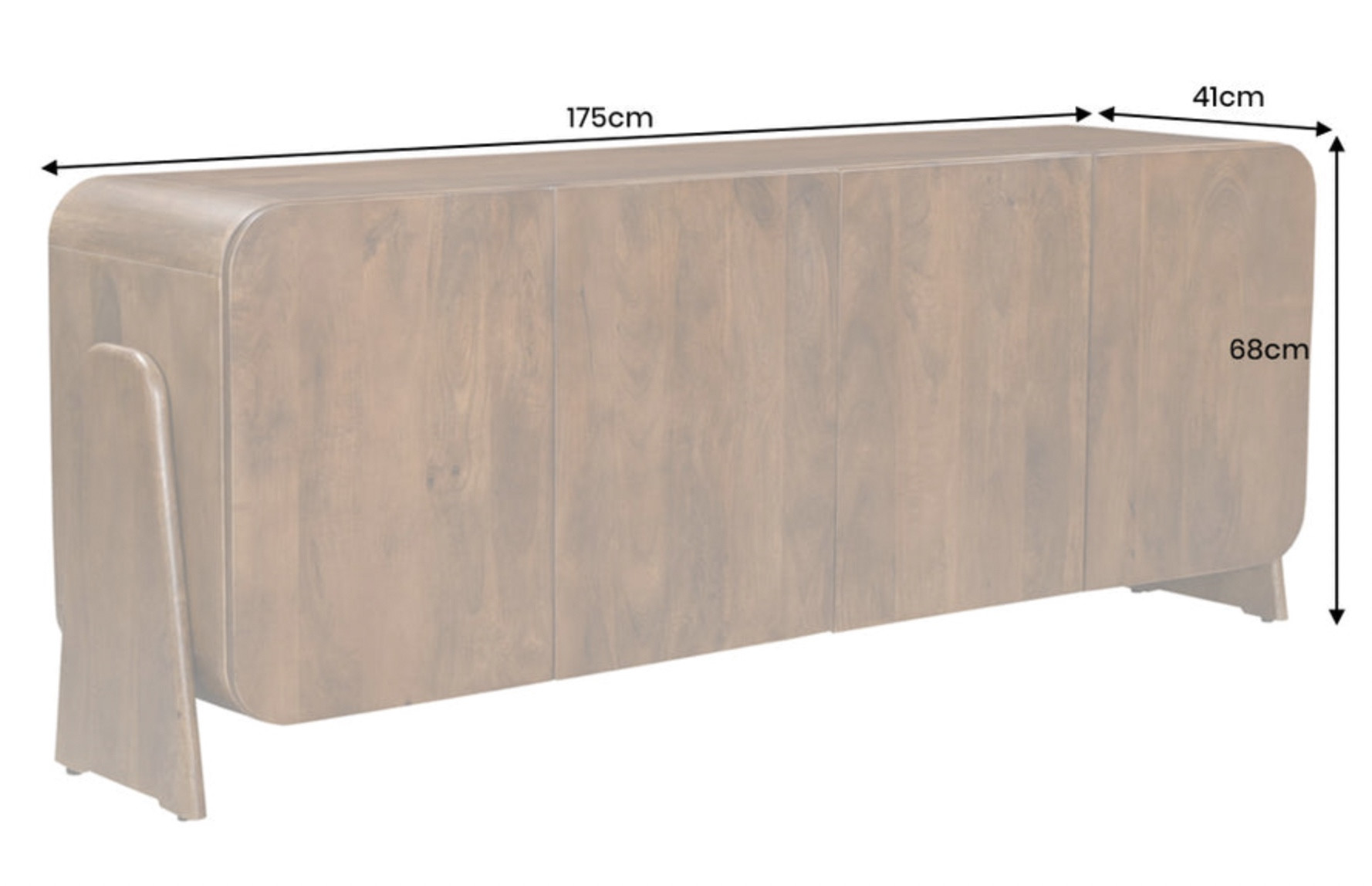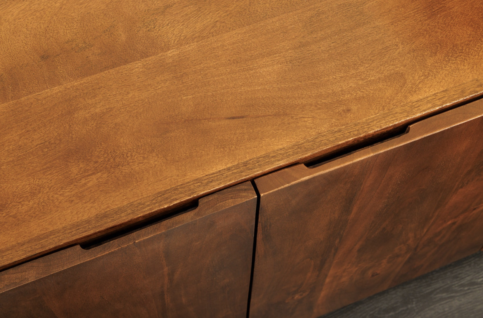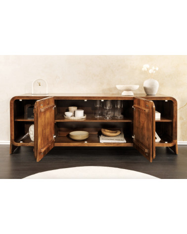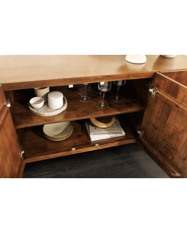 Aporta un toque de elegancia natural a tu hogar con el Aparador BRASIL 175 cm en madera de mango marrón: un mueble robusto, cálido y funcional que realzará tu espacio vital ofreciendo al mismo tiempo una amplia capacidad de almacenamiento.