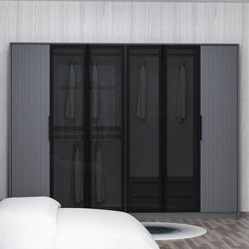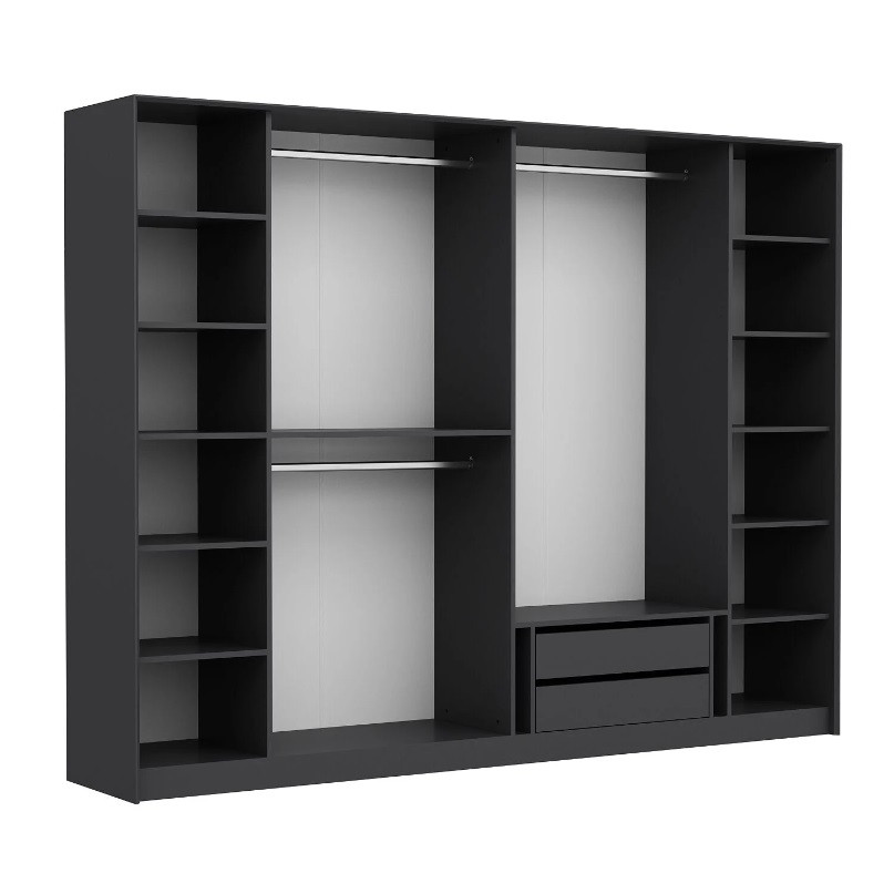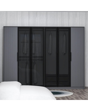El armario tiene un acabado antracita, que confiere a la habitación un aspecto moderno y chic. Este color profundo y elegante añade un toque de audacia al tiempo que conserva una elegancia atemporal, combinando armoniosamente con una variedad de estilos de interior contemporáneos.