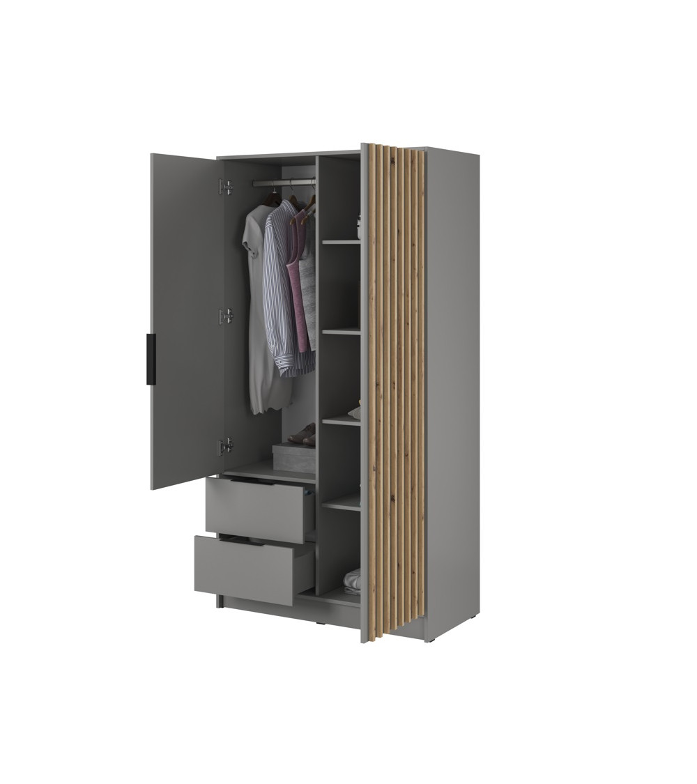Descubra nuestro elegante y funcional armario MELODIE, con un moderno acabado gris.