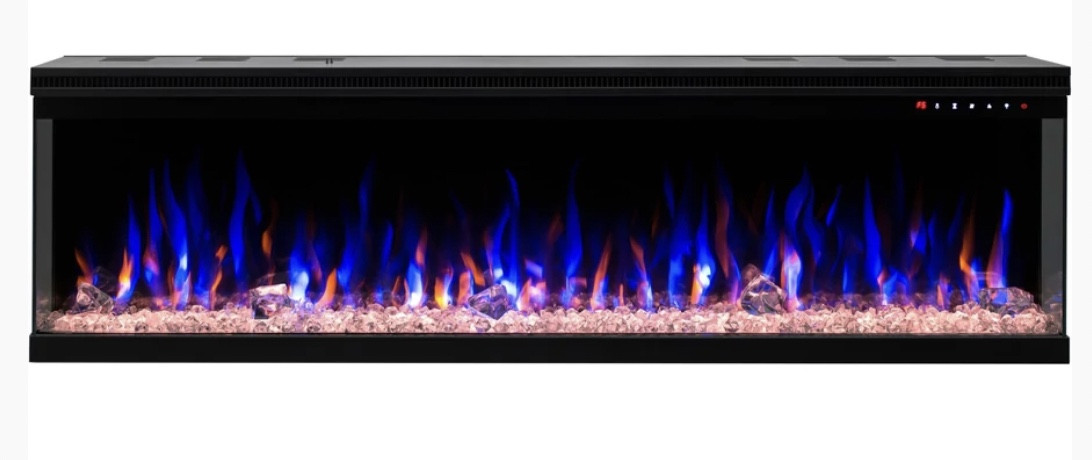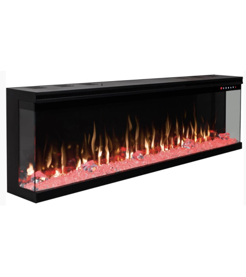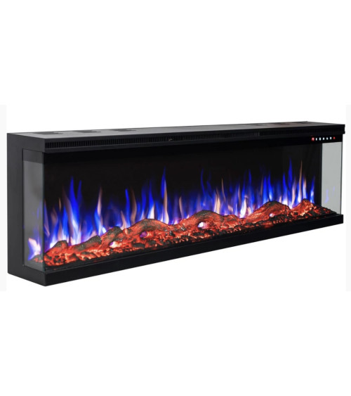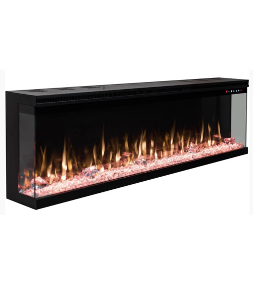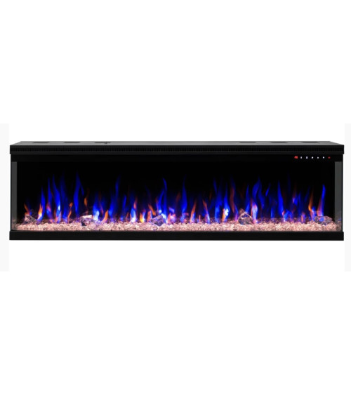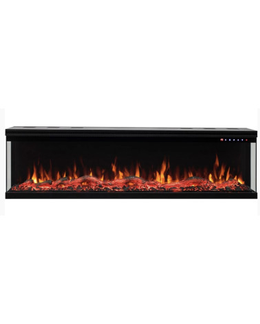 La Chimenea eléctrica empotrable y mural Ulysse 107 cm une seguridad, diseño y rendimiento. Su efecto de llamas realistas crea un ambiente acogedor garantizando a la vez máxima seguridad: sin fuego real, sin riesgo de quemaduras y sin emisiones nocivas. Una elección ideal para familias con niños o mascotas.