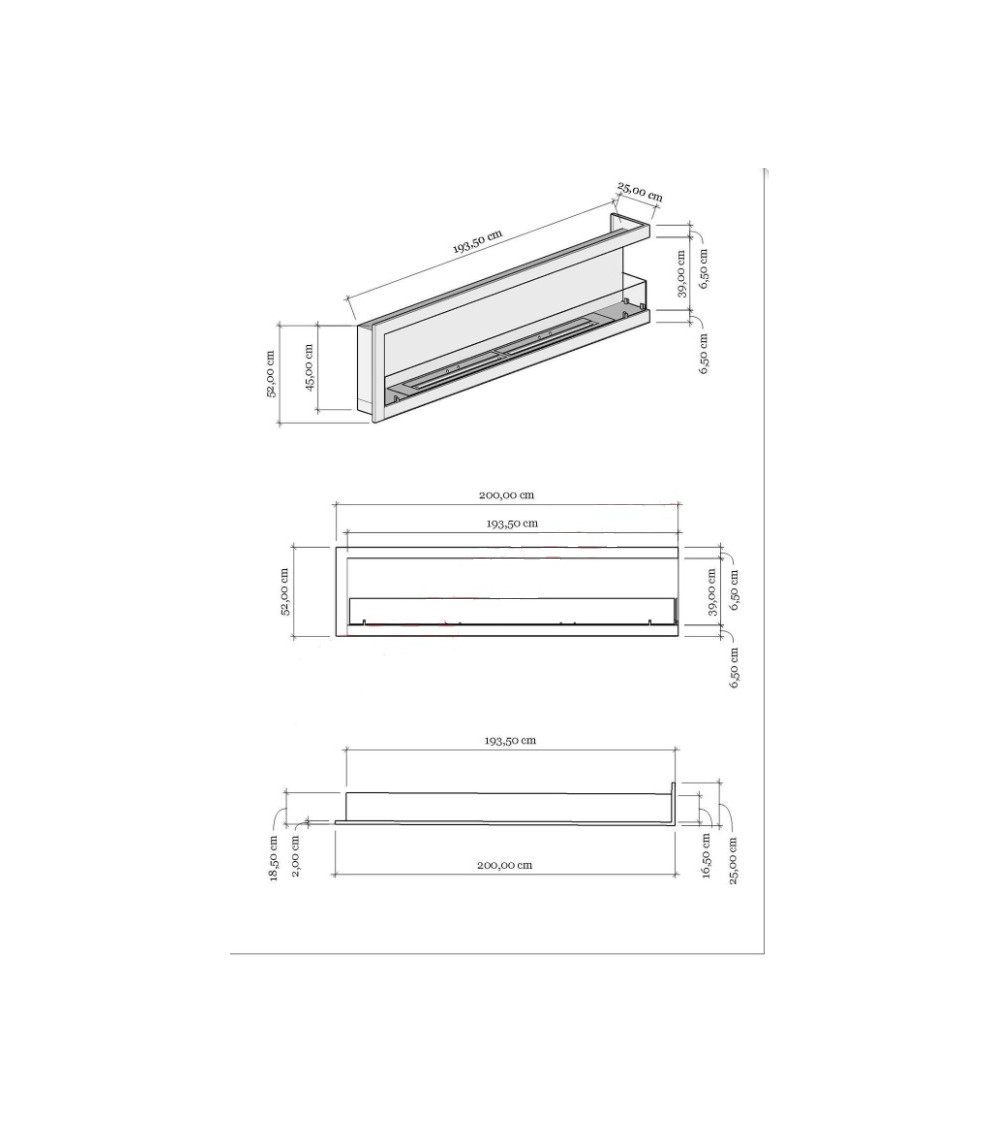 Opte por esta chimenea de pared de bioetanol de 200 cm con ángulo derecho y transforme su interior en un espacio cálido y sofisticado. Disfrute de la belleza de una llama natural mientras se beneficia de una calefacción ecológica y de fácil mantenimiento, ideal para espacios modernos y bien diseñados.