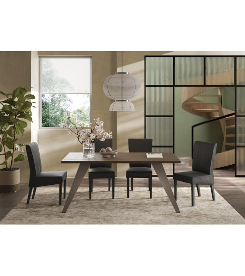 TIZIANO es un juego de comedor completo único cuya combinación de su acabado de alto brillo y color de roble claro crea un ambiente cálido....