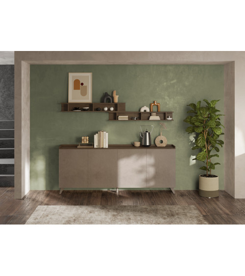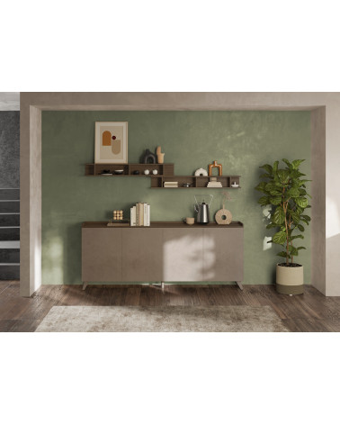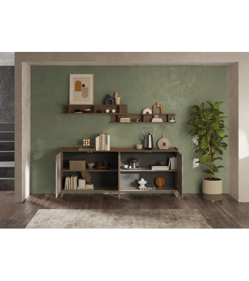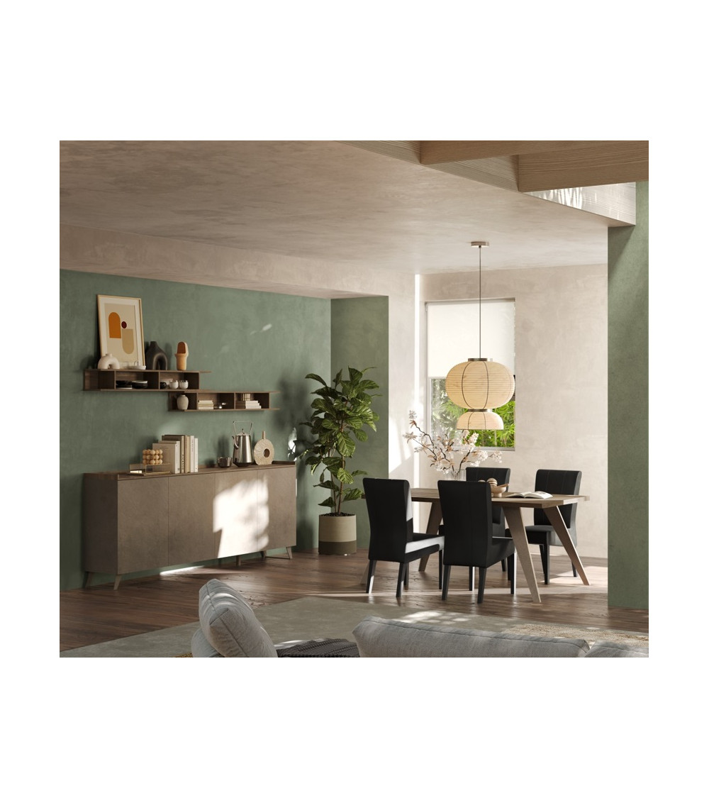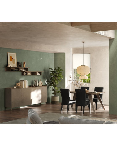 Junto a la mesa, nuestro aparador de roble mercurio y bronce de 4 puertas ofrece un generoso espacio de almacenamiento para su vajilla, cubertería y otros objetos esenciales. La combinación de roble mercurio y bronce crea un sutil y sofisticado contraste, añadiendo un toque de sofisticación a su espacio de comedor.
