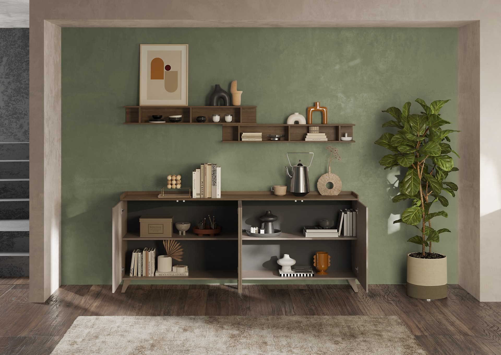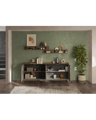 - un aparador de 4 puertas (Ancho: 241 cm; Alto: 99 cm; Fondo: 42 cm)