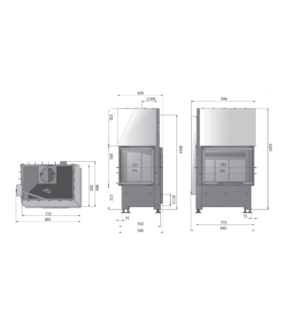 El interior está revestido de refractario de 50 mm en las paredes y de 65 mm en el fondo, porque la robustez no es ninguna broma. El cenicero en forma de cubo es fácil de desmontar para un mantenimiento sin complicaciones. Y con sus meticulosos acabados, como la barandilla de acero cepillado, el asa ergonómica y las patas regulables, este inserto es a la vez un regalo para la vista y un modelo de eficacia.