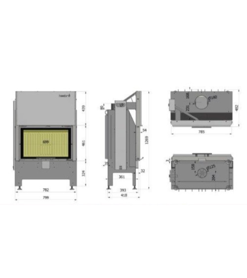 Construido para durar, este insert tiene un cuerpo de acero de alta calidad que puede soportar las temperaturas más altas. Los radiadores integrados alrededor del cuerpo aumentan la superficie de calentamiento, mientras que el sistema de «doble deflector» mejora la eficiencia térmica y reduce las emisiones. El sistema «clear view» garantiza una fácil limpieza del cristal, proporcionando una visión clara e ininterrumpida de las llamas.
