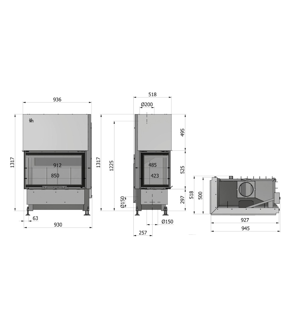 El interior está revestido de refractario de 50 mm en las paredes y de 65 mm en el fondo, porque la robustez no es ninguna broma. El cenicero en forma de cubo es fácil de desmontar para un mantenimiento sin complicaciones. Y con sus meticulosos acabados, como la barandilla de acero cepillado, el asa ergonómica y las patas regulables, este inserto es a la vez un regalo para la vista y un modelo de eficacia.