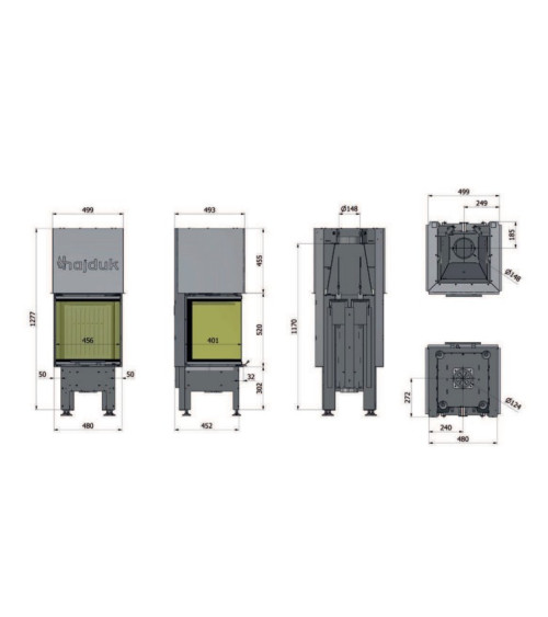 Por último, este insertable incorpora un amplio cenicero extraíble en forma de cubo para facilitar su limpieza, así como una barandilla de acero cepillado en los insertables con puertas de apertura hacia arriba. El tirador de la puerta tiene un diseño ergonómico, con fuerza de presión ajustable, y en los laterales y la parte trasera del inserto se han instalado radiadores para una mejor disipación del calor. Los pies y los tornillos sirven para colocar el aparato y nivelar los suelos irregulares.