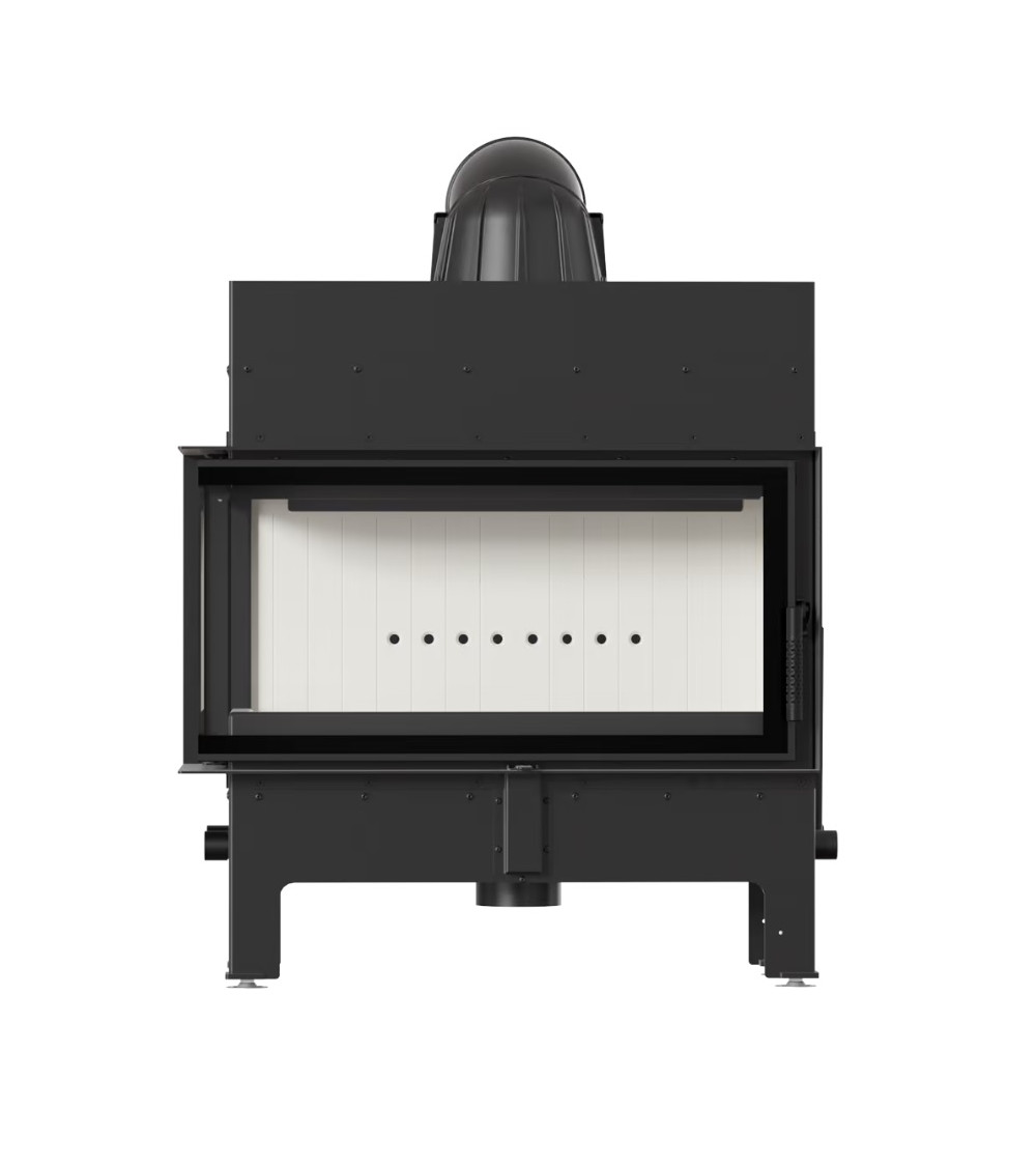 Equipada con una rejilla que garantiza una combustión uniforme y eficaz de la leña, lo que conlleva un mejor aprovechamiento del combustible y una mayor producción de calor, y un cenicero en forma de tolva situado debajo de la rejilla de hierro fundido, que permite retirar cómoda y rápidamente las cenizas de la chimenea.