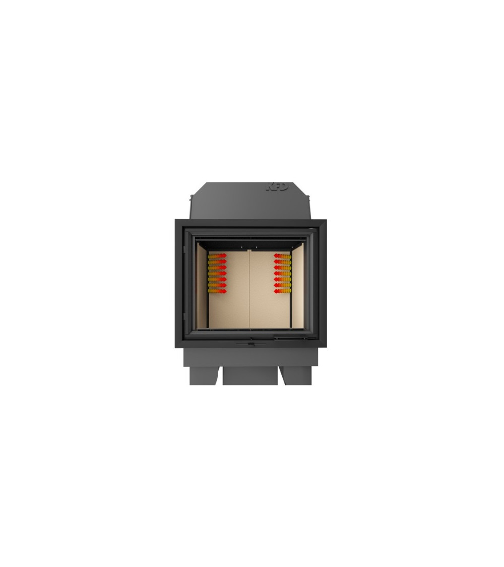 CALOR Y ECOLOGÍA: Este modelo está equipado con un moderno sistema de doble combustión. El aire necesario para la combustión entra en el horno a través de las aberturas de los canales de aire especiales situados en las esquinas del inserto. El aire suministrado a través de estos canales es precalentado. Aquí se queman los elementos que en los inserts normales se escapan a una chimenea. Como resultado, los parámetros de calefacción de este insert son mejores y la combustión es más respetuosa con el medio ambiente.