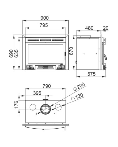 INSERTO DE CHIMENEA PUERTA GUILLOTINA NEMO 4B/24 calefacción central 14-21 kW