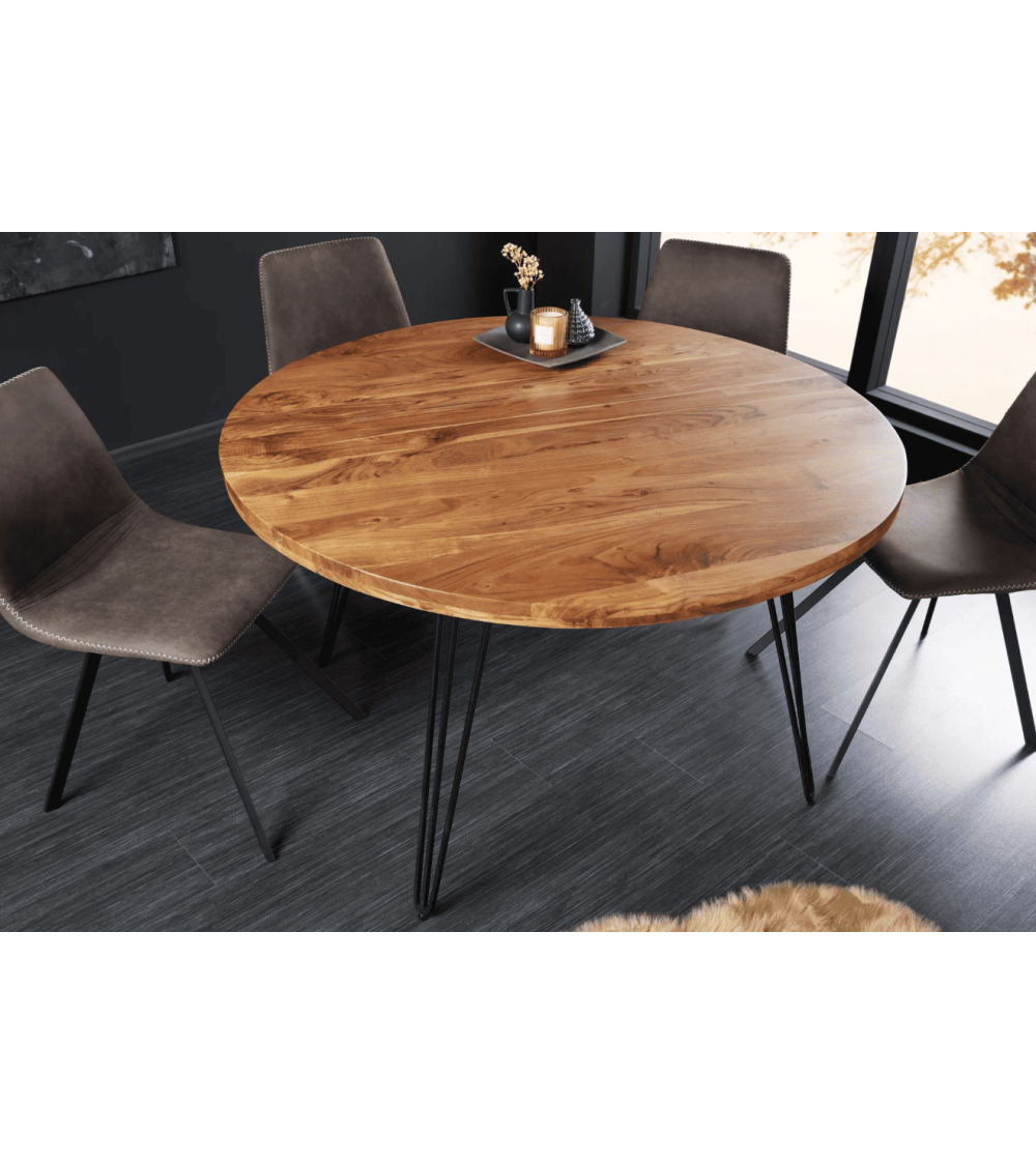 Añade un toque de elegancia natural a tu comedor con la mesa de comedor SCORPION redonda de 120 cm. Fabricada en madera maciza de acacia y equipada con patas de metal negro, combina robustez y diseño moderno para realzar tus momentos compartidos.