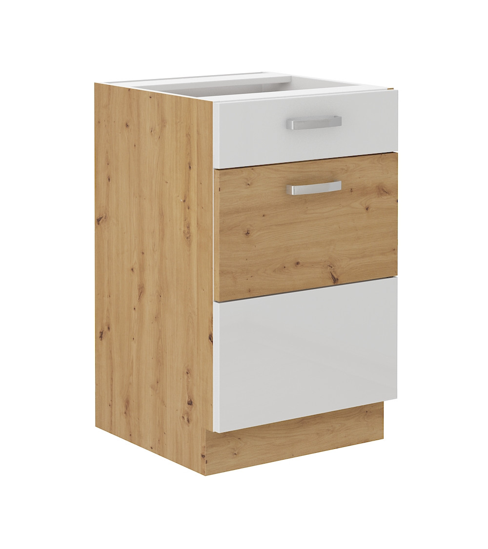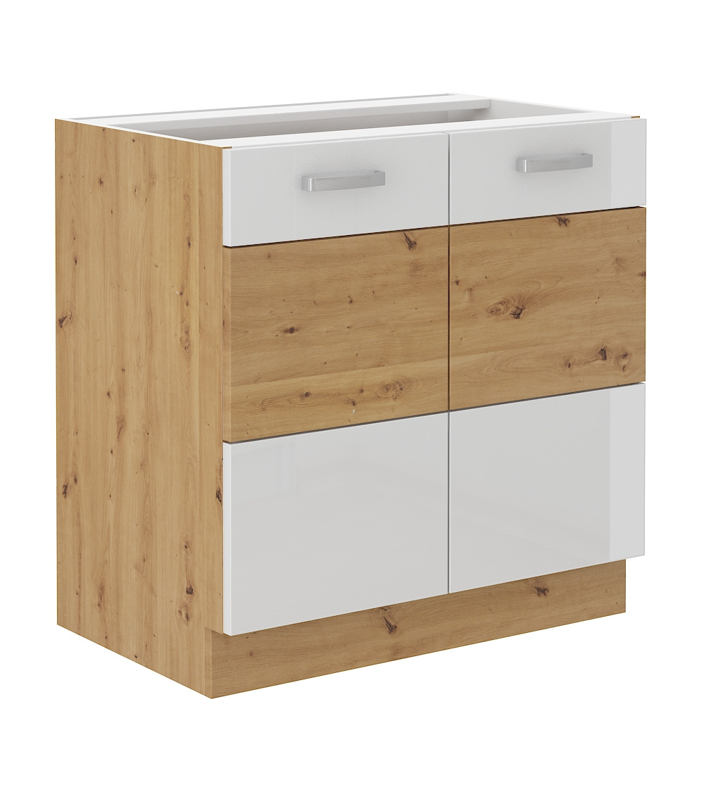 - Material del frente: laminado de roble artesanal de 16 mm / MDF de 16 mm, blanco brillo