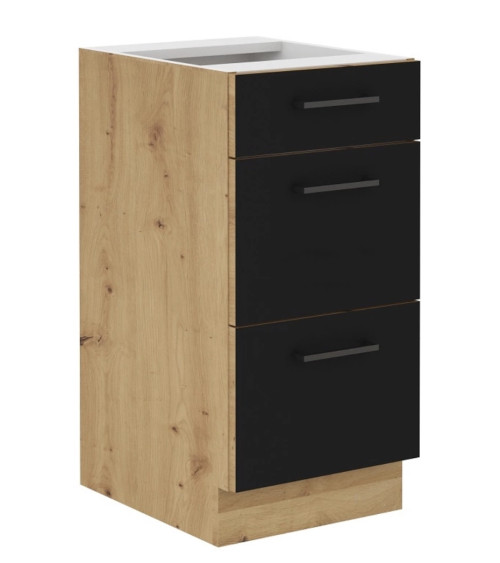 La Cocina MONZA de 260 cm transforma tu espacio en un ambiente práctico y acogedor. La combinación de roble artisan y negro mate aporta un toque de elegancia contemporánea, ideal para cualquier cocina. Los tiradores negros en plástico complementan el diseño de forma sutil y moderna.