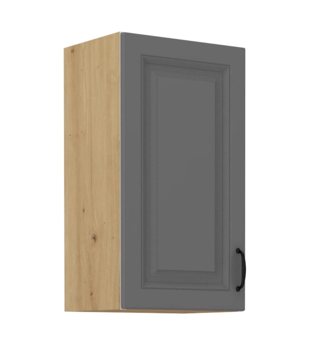 - Frentes gris ceniza mate y cuerpo en roble artisan.