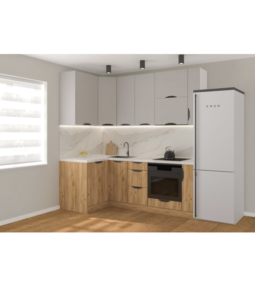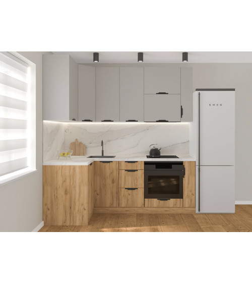 | Modelo | Cocina Leo en L - 122x220 cm - Blanco y Roble |