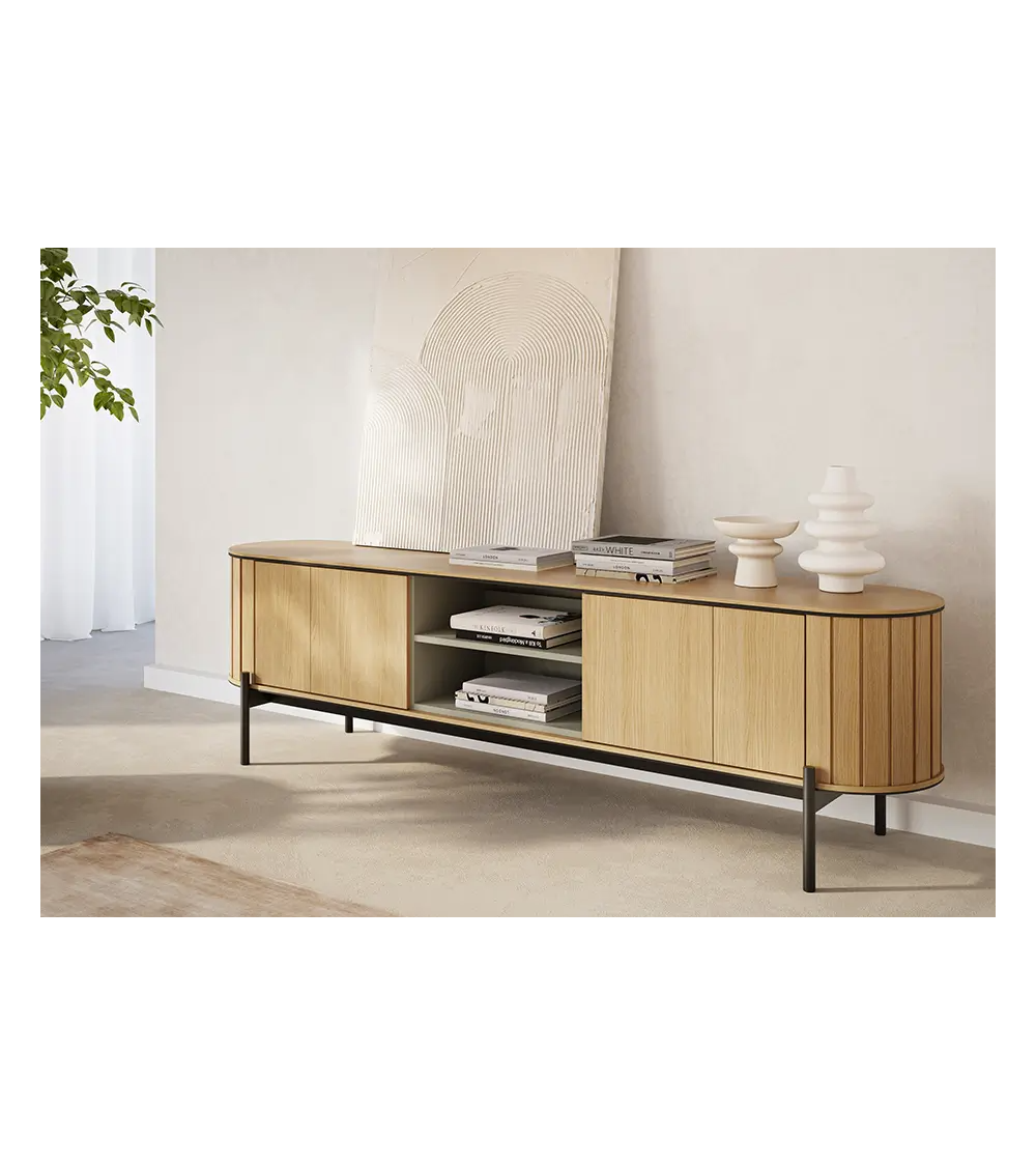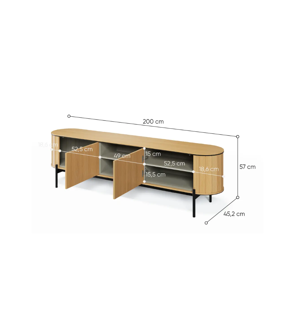 En Azura Home Design, nos complace presentar el Mueble TV RT-06, una solución elegante y práctica para la organización de tu salón. Con sus amplias dimensiones y su diseño moderno, cumple perfectamente con las expectativas de los amantes del estilo contemporáneo y la funcionalidad.