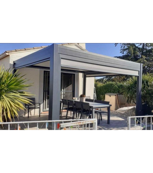 Pérgola bioclimática Jane 4x4m de aluminio con 3 toldos