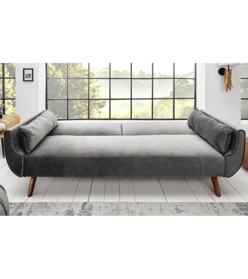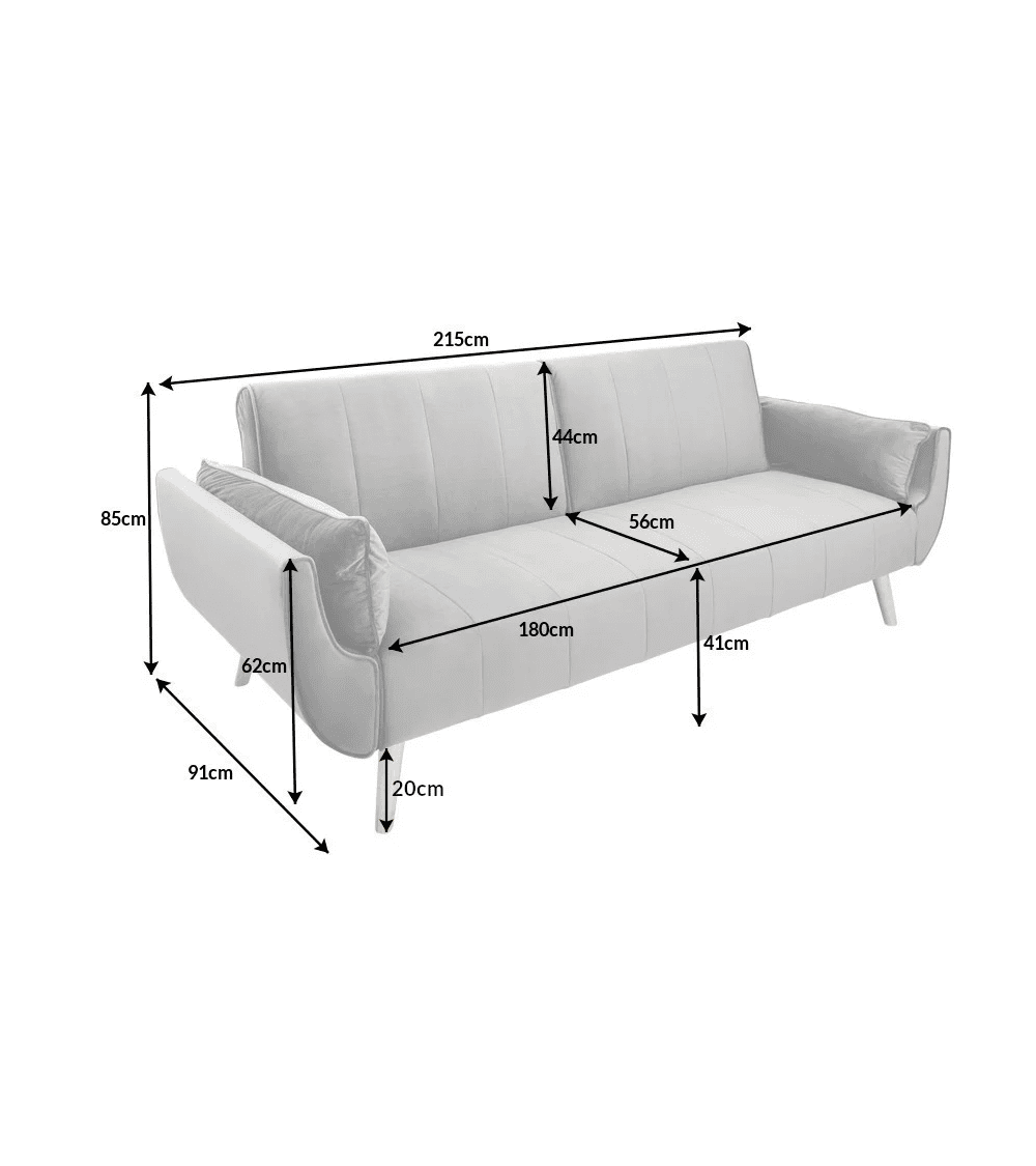 Transforma tu salón con el sofá cama DIVANI 215 cm. Este modelo en terciopelo gris plateado aporta elegancia a tu espacio combinando una solución de sofá y cama con estilo.