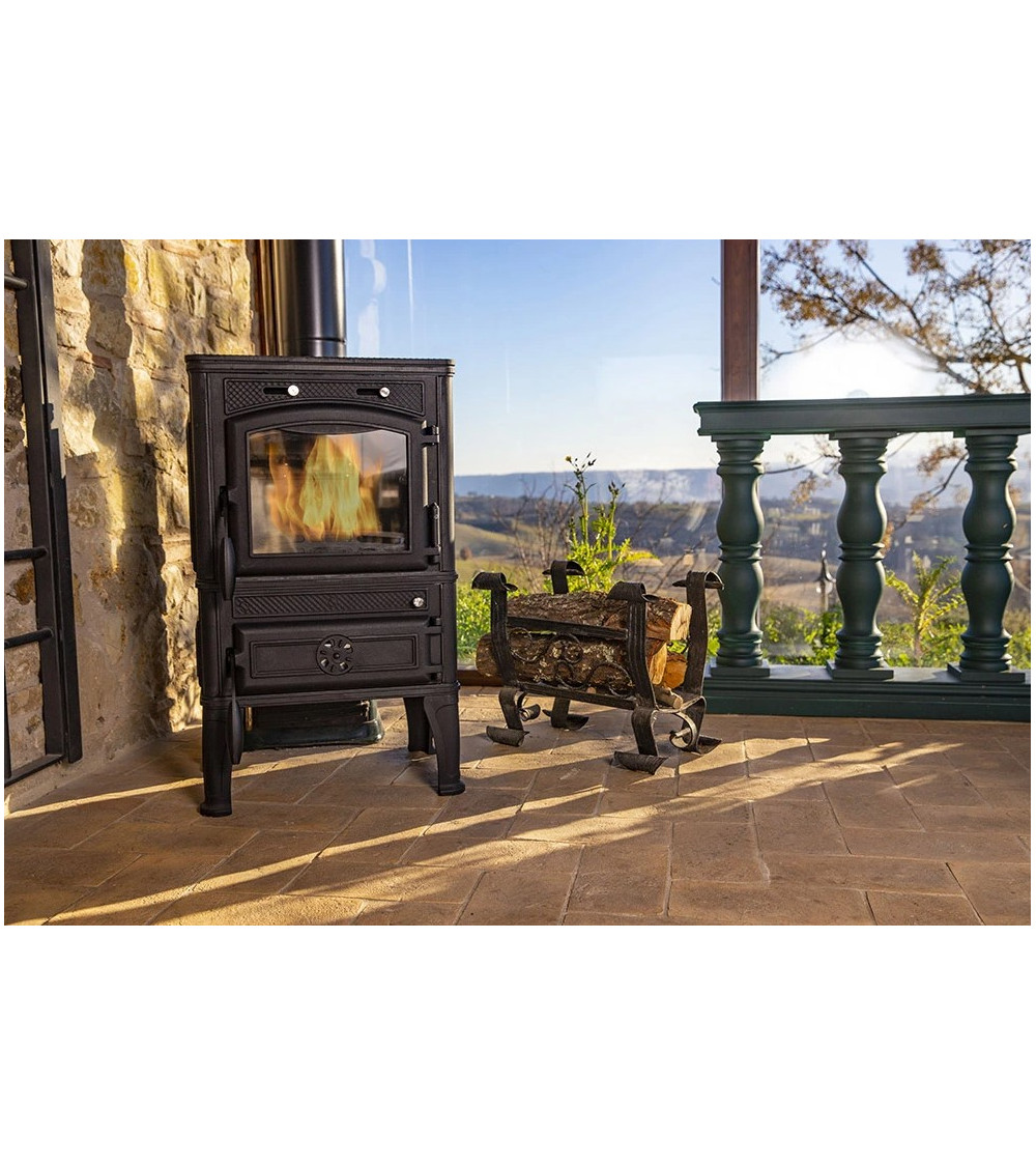Porte en fonte avec vitre vitrocéramique résistant à 750ºC.