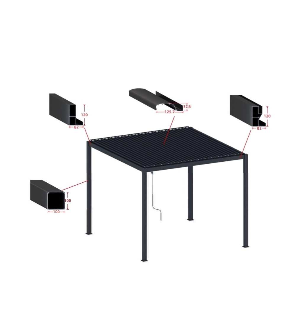 Luo moderni ja toimiva ulkotila tällä 4x3 metrin bioklimaattisella pergolalla, joka on ihanteellinen terassille tai parvekkeelle. Säädettävien säleiden ja integroidun sivumarkiisin ansiosta pergola tarjoaa ympärivuotista mukavuutta ja suojaa, sulautuen täydellisesti ympäristöönsä.