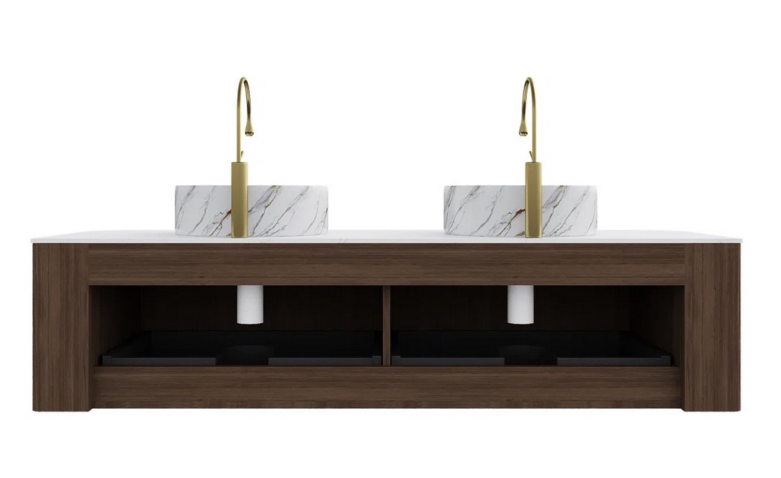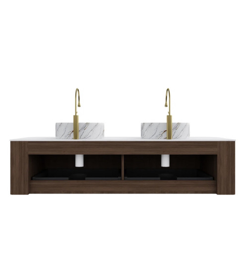 En MDF de haute qualité, ses façades laquées relevées par des nuances de bois confèrent à l’ensemble une délicate et luxueuse simplicité.