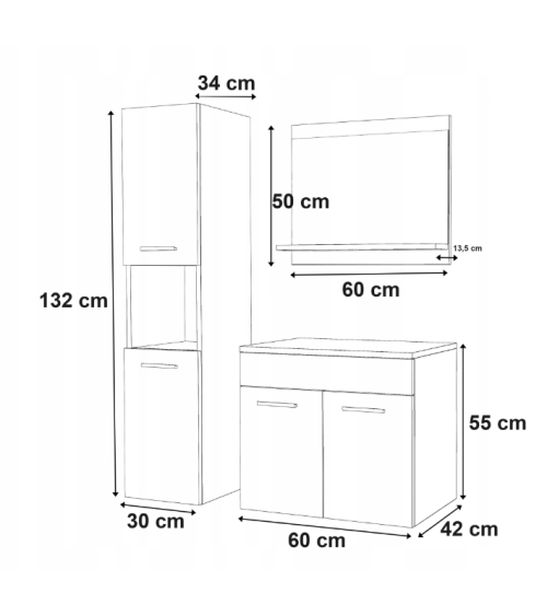 Meuble bas L60 cm + Vasque intégrée + 2 colonnes L30 cm+miroir