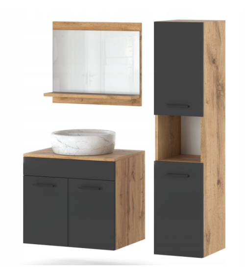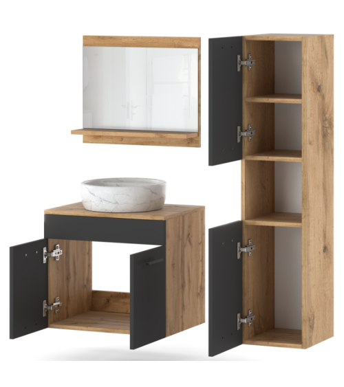 copy of Ensemble salle de bain, meuble+colonne+miroir+vasque STEEL noir frêne, en plusieurs dimensions