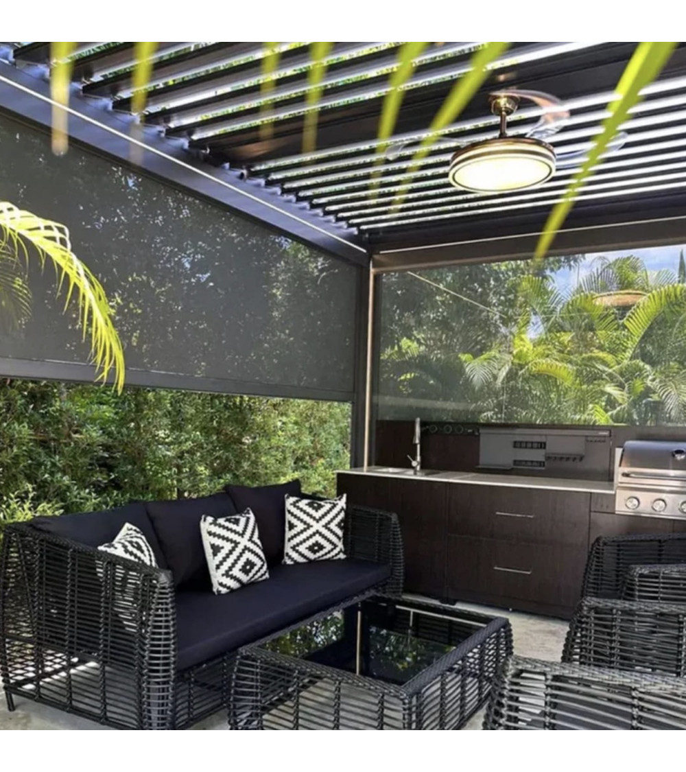 Choisissez cette pergola bioclimatique 4x4 m avec stores moustiquaires inclus et transformez votre extérieur en un espace moderne, confortable et durable.