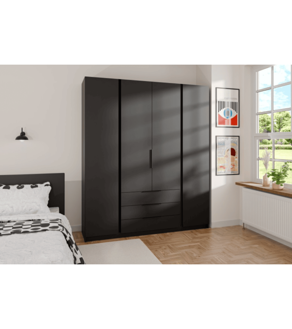 Découvrez l'Armoire KAJA Gris Anthracite, idéale pour optimiser votre espace avec style et praticité. Grâce à ses 4 portes et 3 tiroirs, elle permet de ranger vêtements, accessoires et linge de maison de manière organisée. Ses dimensions de 200 x 239 x 61,9 cm en font une solution parfaite pour les grandes chambres ou les dressings.