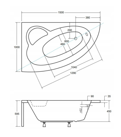Baignoire d'angle DOPPIO 180x130 cm version Droite