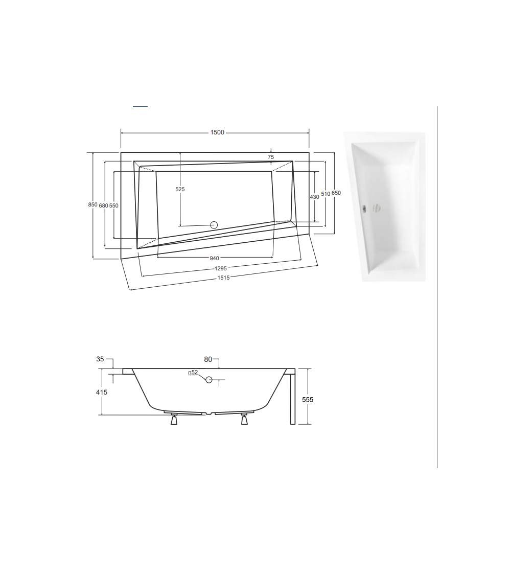 | Produit | Baignoire d’angle gauche INTIMA avec tablier |