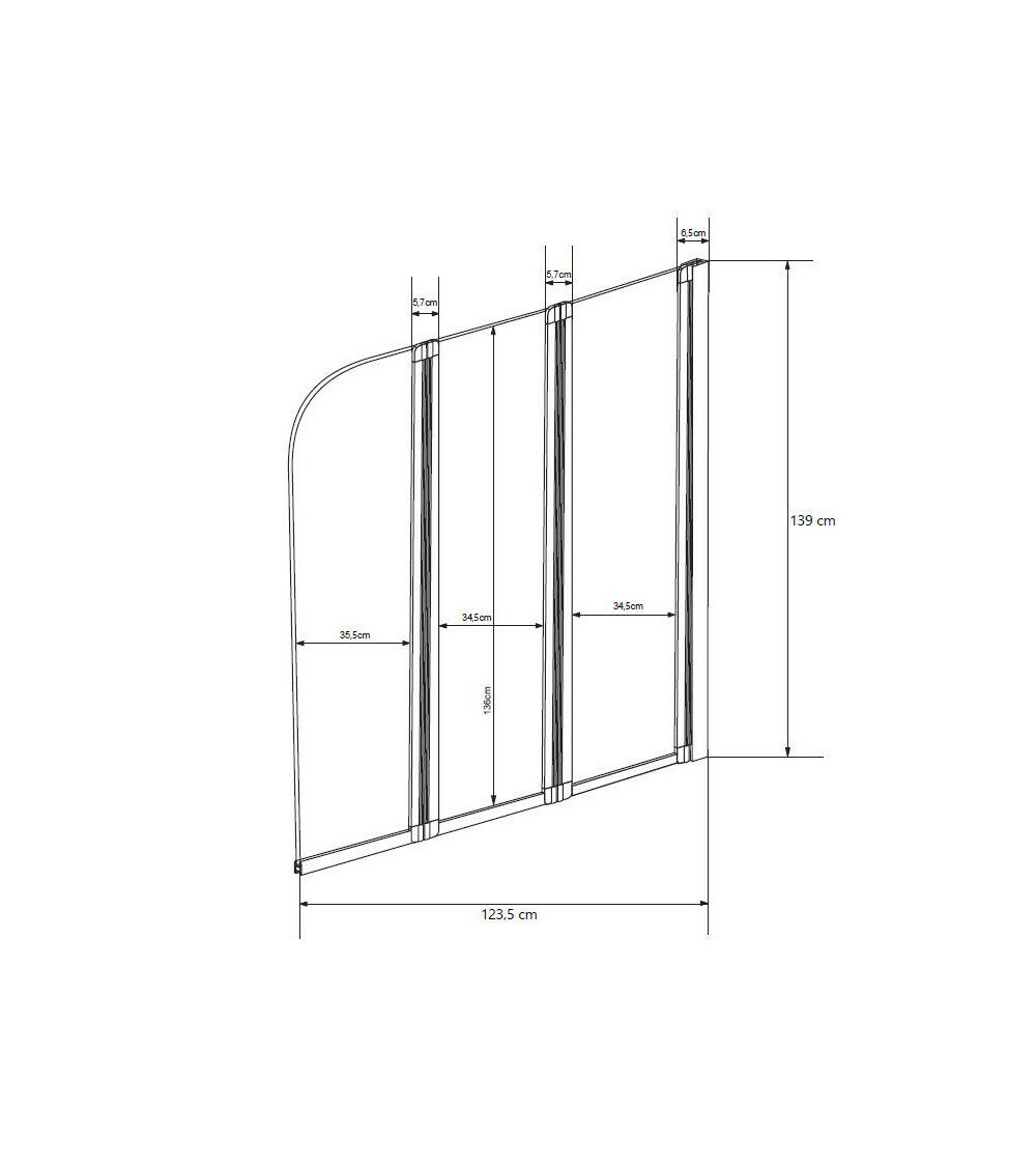 | Pare-baignoire | 3 volets réversibles gauche/droite – 123,5 × 139 cm |