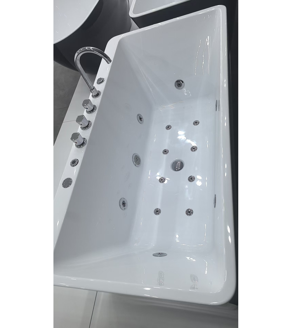Avec la Baignoire Îlot Balnéo Bornéo , vivez une expérience sensorielle inédite directement chez vous. Ses 8 jets d'air puissants et ses 6 buses latérales transforment votre bain quotidien en un rituel de relaxation digne d’un spa professionnel.