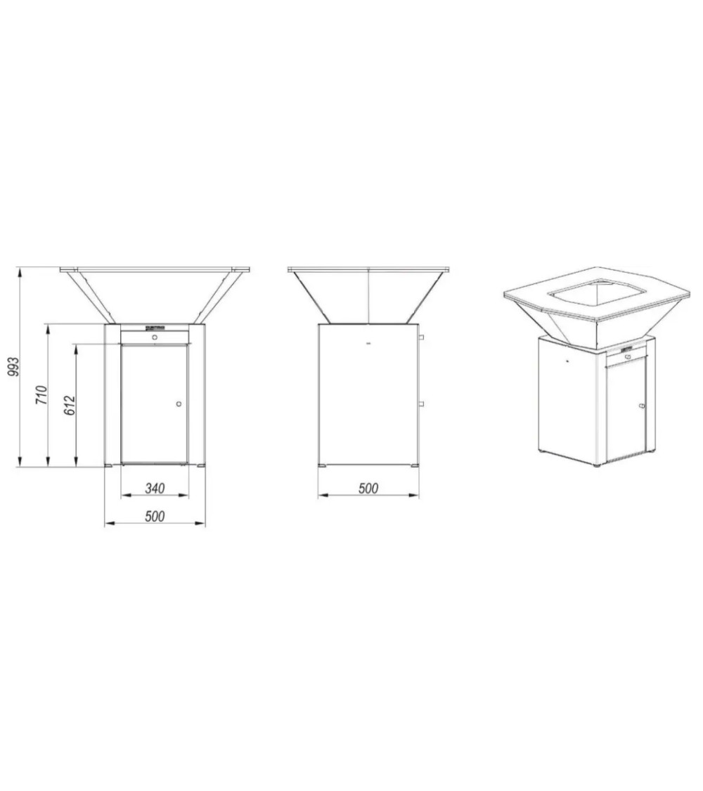 Muni d'un tiroir de récupération des cendres et d'une porte dans laquelle vous pourrez ranger vos bûches ou accessoires de barbecue, pour une utilisation dans le plus grand confort.