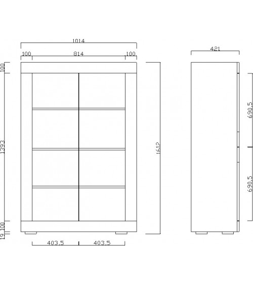 Dimensions : - Vitrine 4 portes (L x H x P) : 102 x 162 x 43 cm Caractéristiques: - Couleur: Noir mat,...