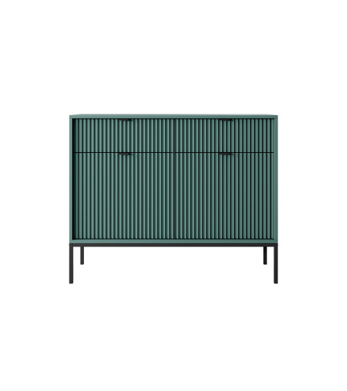 Disponible en vert, elle apporte une note de fraîcheur et d'originalité à votre espace et s'adapte facilement à tous les styles d'intérieur. Les poignées et le piétement noirs, très élégants ajoutent une touche finale subtile à son design.