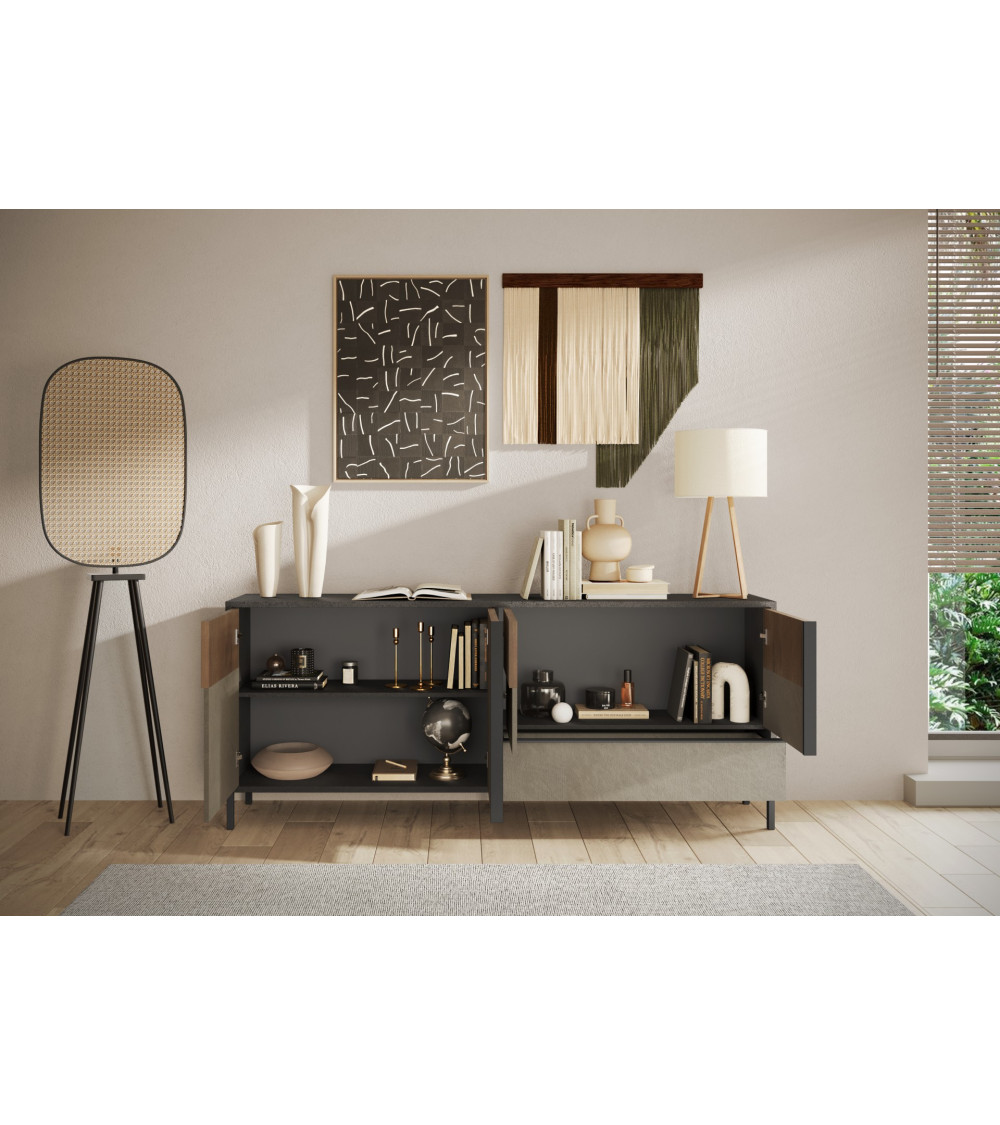 Notre buffet ETNA offre un design contemporain et polyvalent qui s'intègre harmonieusement dans divers styles de décoration intérieure.